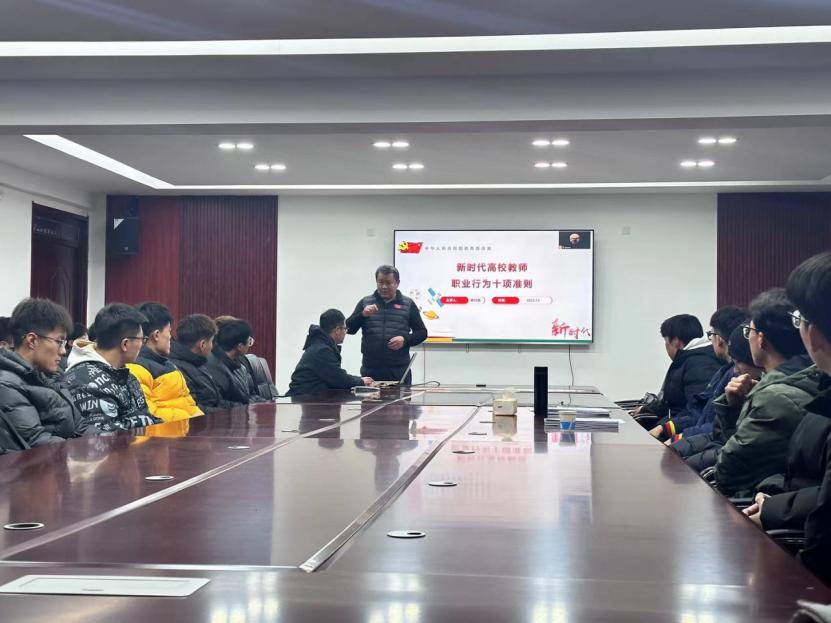 会议上,姜付高同志讲解了新时代高校教师十项准则。 一、坚定政治方向。高校教师应坚持以习近平新时代中国特色社会主义思想为指导,拥护中国共产党的领导,贯彻党的教育方针。 二、自觉爱国守法。高校教师应遵守法律法规,依法履行教师职责。 三、传播优秀文化。带头践行社会主义核心价值观,弘扬真善美,传播正能量。 四、潜心教书育人。落实立德树人根本任务,因材施教,教学相长。 五、关心爱护学生。做到真心关爱学生,做学生良师益友。 六、坚持言行雅正。做到为人师表,以身作则。举止文明,自重自爱。 七、遵守学术规范。做到严谨治学,潜心问道。坚守学术良知,反对学术不端。 八、秉持公平诚信。做到坚持原则,处事公道。 九、坚守廉洁自律。做到严于律己,清廉从教。 十、积极奉献社会。履行社会责任,树立正确利益观,为社会发展贡献聪明才智。