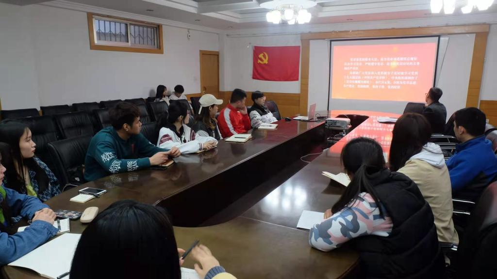 党支部于院系一楼会议室召开党员发展对象培训会议,本次会议由本科生党支部书记唐海峰主持。