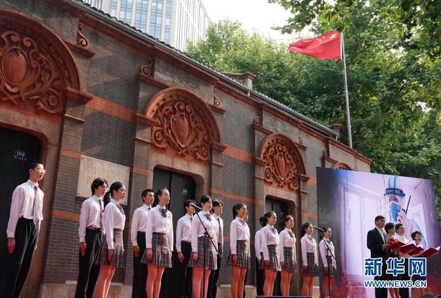 2020年7月1日,“七一”重温入党誓词仪式在中共一大会址前举行。这是活动现场以诗朗诵形式讲述抗疫一线的党员故事。新华社记者 刘颖 摄