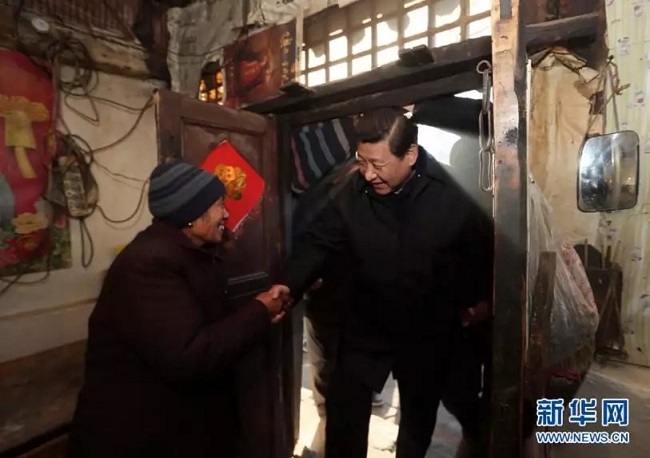 习近平表示,快过春节了,知道你们有困难,特地来看望你们。看到郭永财等群众住房还比较困难,他叮嘱当地干部要加快棚户区改造,排出时间表,让群众早日住上新房;要做好慰问困难群众工作,让每个家庭都过好节。习近平强调,我们党员干部都要有这样一个意识:只要还有一家一户乃至一个人没有解决基本生活问题,我们就不能安之若素;只要群众对幸福生活的憧憬还没有变成现实,我们就要毫不懈怠团结带领群众一起奋斗。