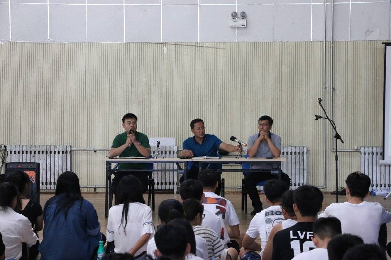 2018-2019学年度第一学期主要学生干部会议。学院党委副书记展利民、团委副书记梁贺涵、2017级辅导员李士建出席此次大会,2015级、2016级、2017级各班班长、团支书、预备党员、入党积极分子以及团委、学生会、社团的主要干部参加了此次会议。