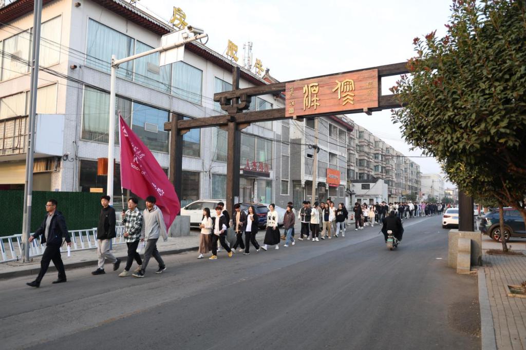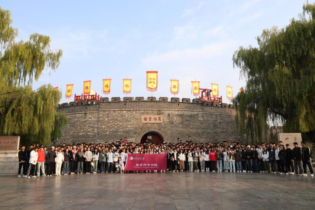迎着初升旭日,2023全体学生在墨子像前集合,辅导员唐海峰为同学们讲解活动注意事项,随后2023级全体学生步行前往“三孔”景区,并在孔庙正门前、“万仞宫墙”下拍照留念。