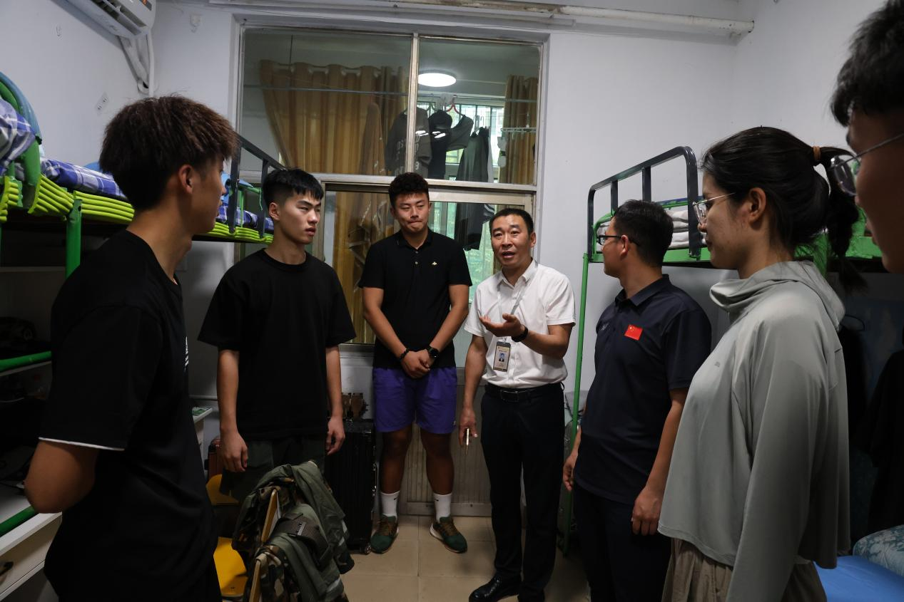 为深入了解2023级新生入学后的住宿和生活情况,促进新生能够尽快适应大学生活。9月10日,体育学部党委书记刘敏、体育学部党委副书记马振华、山东省乡村振兴体育研究院副院长曾凡鑫、辅导员唐海峰、栾永鑫、王冰、周晗一同走进学院2023级本科生宿舍看望新生。