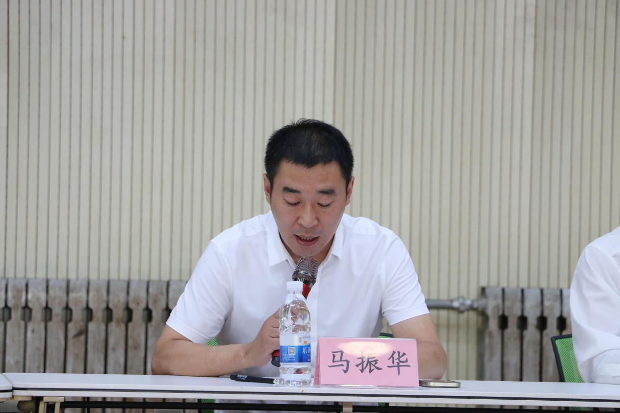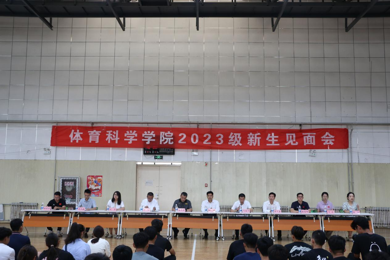 2023级全体新生参加会议。见面会由体育学部党委副书记马振华主持。