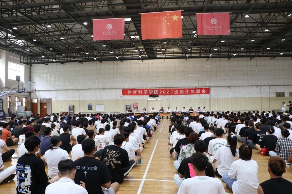 2023级新生见面会于学院篮球馆隆重举办。体育学部党委书记刘敏,体育学部主任、动漫av