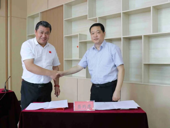 院长姜付高和滕州市中医医院党委副书记、院长甘志浩签订《校地联合共建合作项目框架备忘录》。
