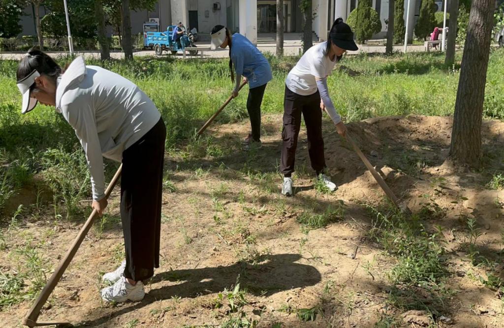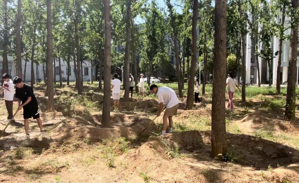 学院通过与学校后勤处绿化科联系,为学生提供了生产性服务的机会,利用课余时间进行自愿报名,开展了除草绿化活动,让学生亲身感受体验劳动。