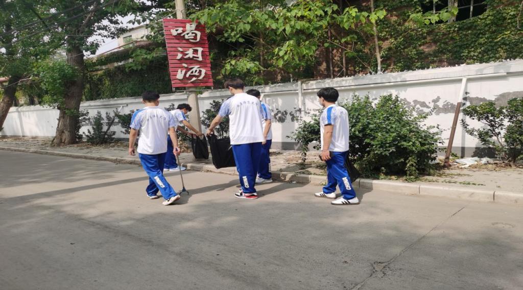2022级各团支部志愿者们分组成立 ,在奎文社区街道负责人的带领下,有序进行打扫。 同学们不畏炎热,为社区整洁明亮的环境辛勤劳动,挥洒着自己的汗水。