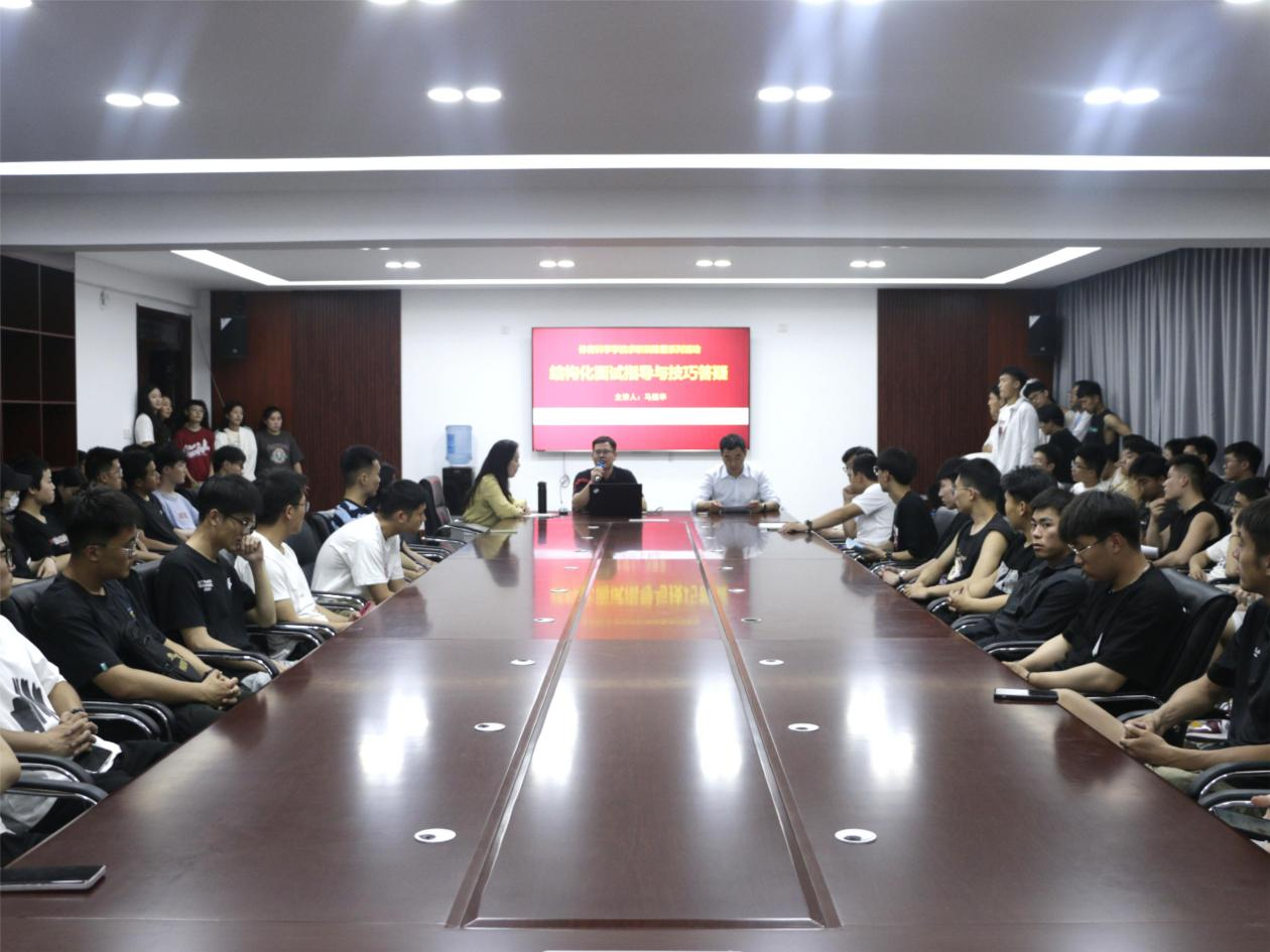 于教学楼会议室举办毕业生面试技巧专题培训。本次培训由体育学部党委副书记马振华主讲、2019级辅导员唐海峰主持。