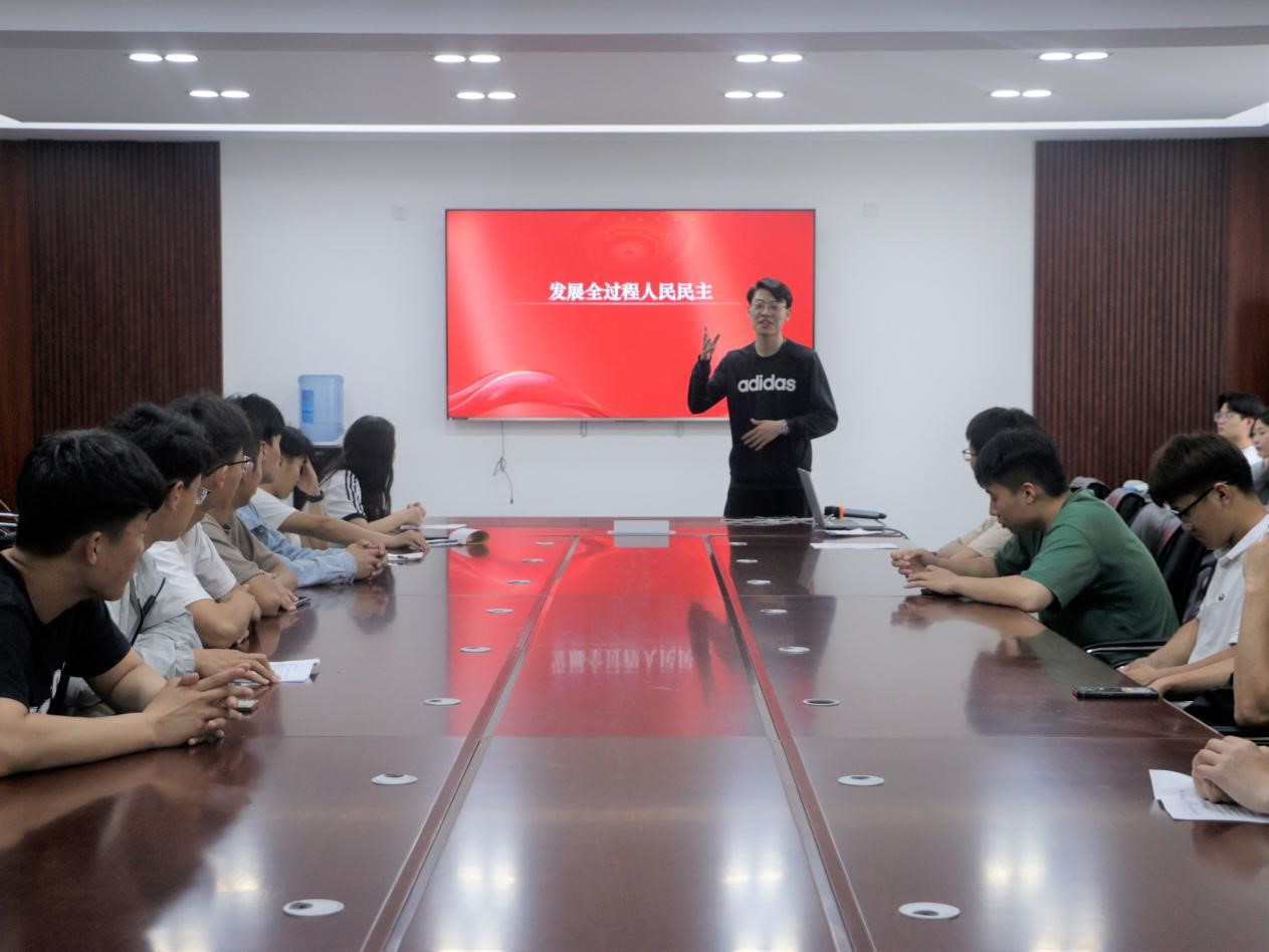 宣讲过程中,来自我校马克思主义学院的学习贯彻习近平新时代中国特色社会主义思想学生宣讲团就“两个结合”的相关内容为在场学生代表做宣讲报告。宣讲团不仅让在场学生全面了解“坚持和发展中国特色社会主义政治宣言和行动纲领”,还结合身边实例生动形象地讲述了“发展全过程人民民主”这一重要课题,最后通过“以中国式现代化全面推进中华民族伟大复兴”的心得体会激励莘莘学子立大志、明大德、成大才、担大任的信心与决心。