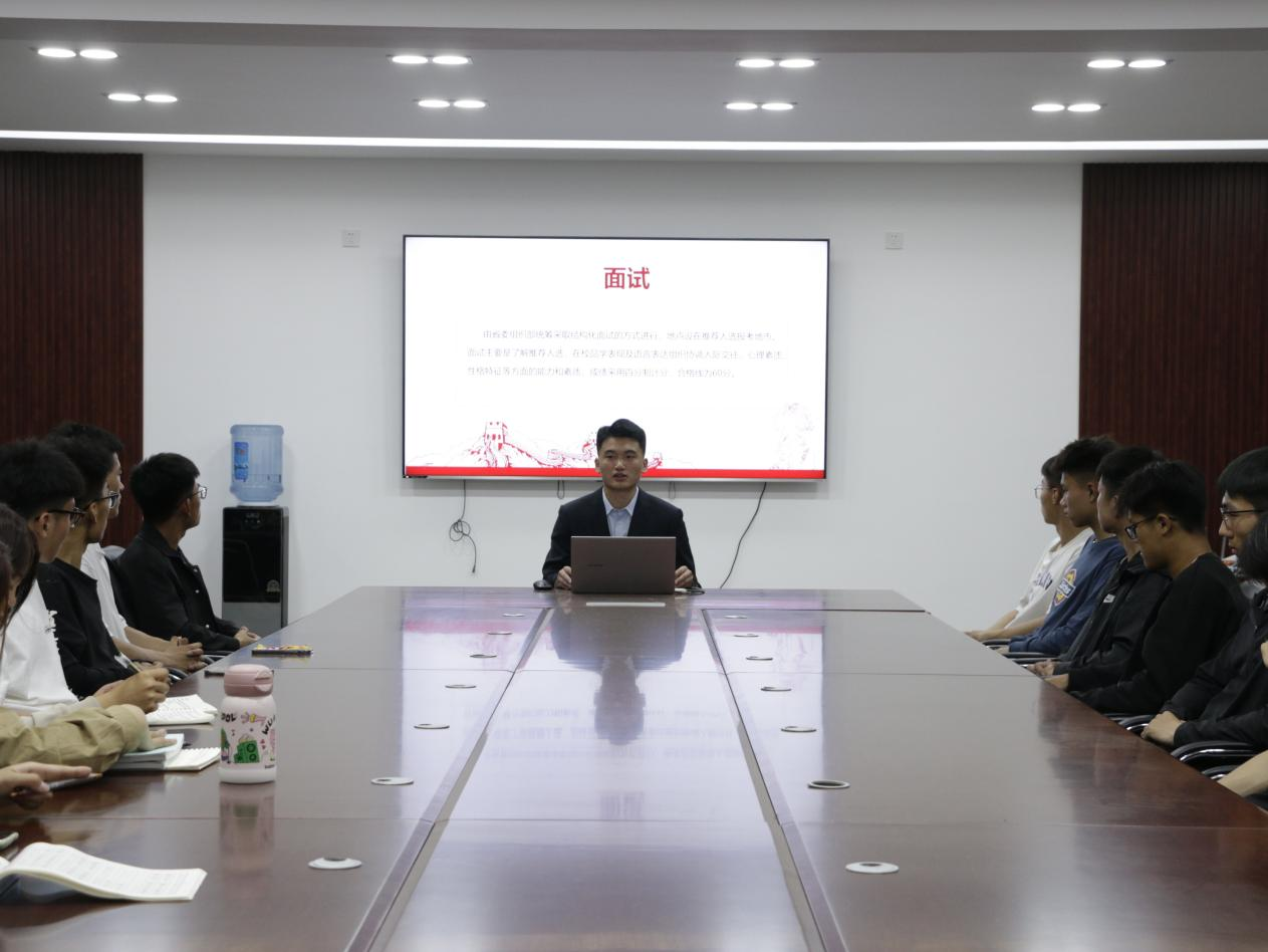 王浩宇从自身经历出发,依据选调流程,从报名、备考、笔试、综合考察、选岗和政审体检以及相关的选调政策这七个方面依次进行详细介绍。同时,他讲到笔试阶段需要打牢基础、分模块强化、系统刷题、重视申论、回归真题;面试准备需要理清大体思路、坚持对练模拟、关心时政、积累素材。最后分享了自己的心得体会,叮嘱同学们要珍惜应届生身份,保持积极的心态。在互动交流环节,同学们围绕就业形式、就业渠道、求职经验等踊跃提问,现场气氛热烈。