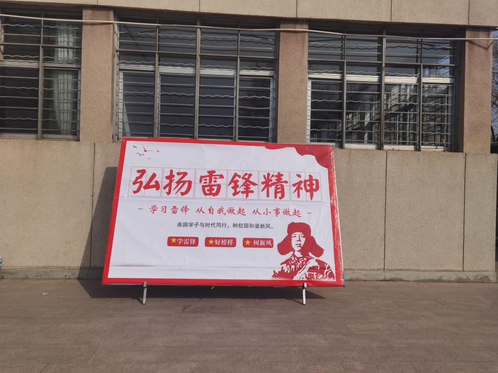 积极响应,通过拉横幅、立展板等方式营造雷锋精神氛围、做好大学生学雷锋活动准备工作,鼓励同学们传承弘扬雷锋精神、积极开展志愿服务。