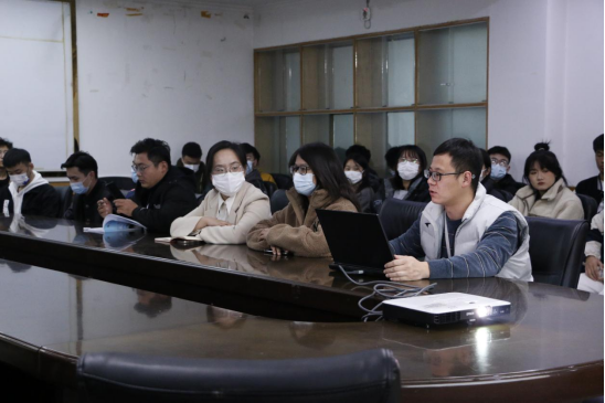 本科生党支部于一楼会议室集中学习党的二十大工作报告,会议由党支部书记唐海峰同志主持,动漫av