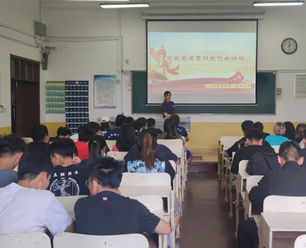 各团支部书记分享此次党代会相关报告,并激励同学们深入学习领悟学校第九次党代会精神。随后,团支部书记调深入学思践悟党员代表大会精神的重要性,引导同学们向党组织靠拢,在实践中实现个人与组织共成长。最后,同学们以小组为单位进行了学校第九次党代会精神思想觉悟分享活动。