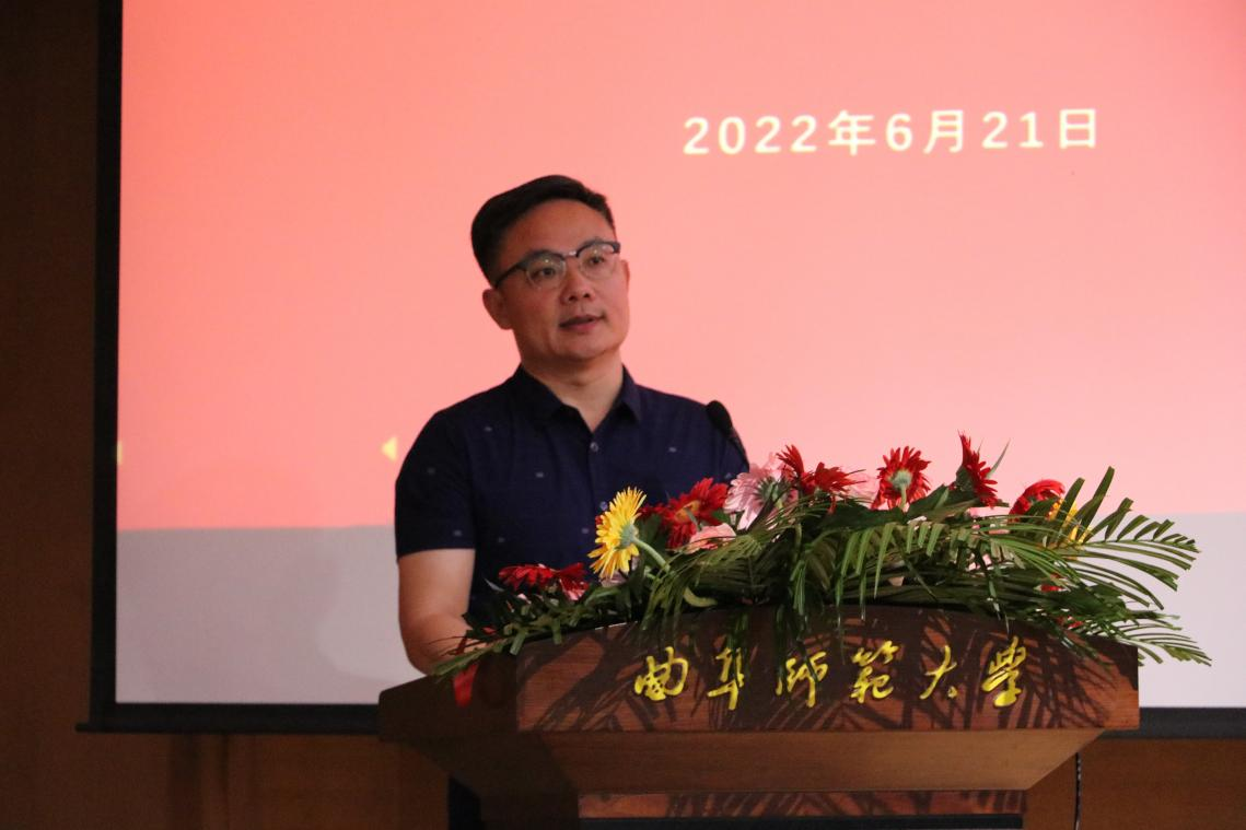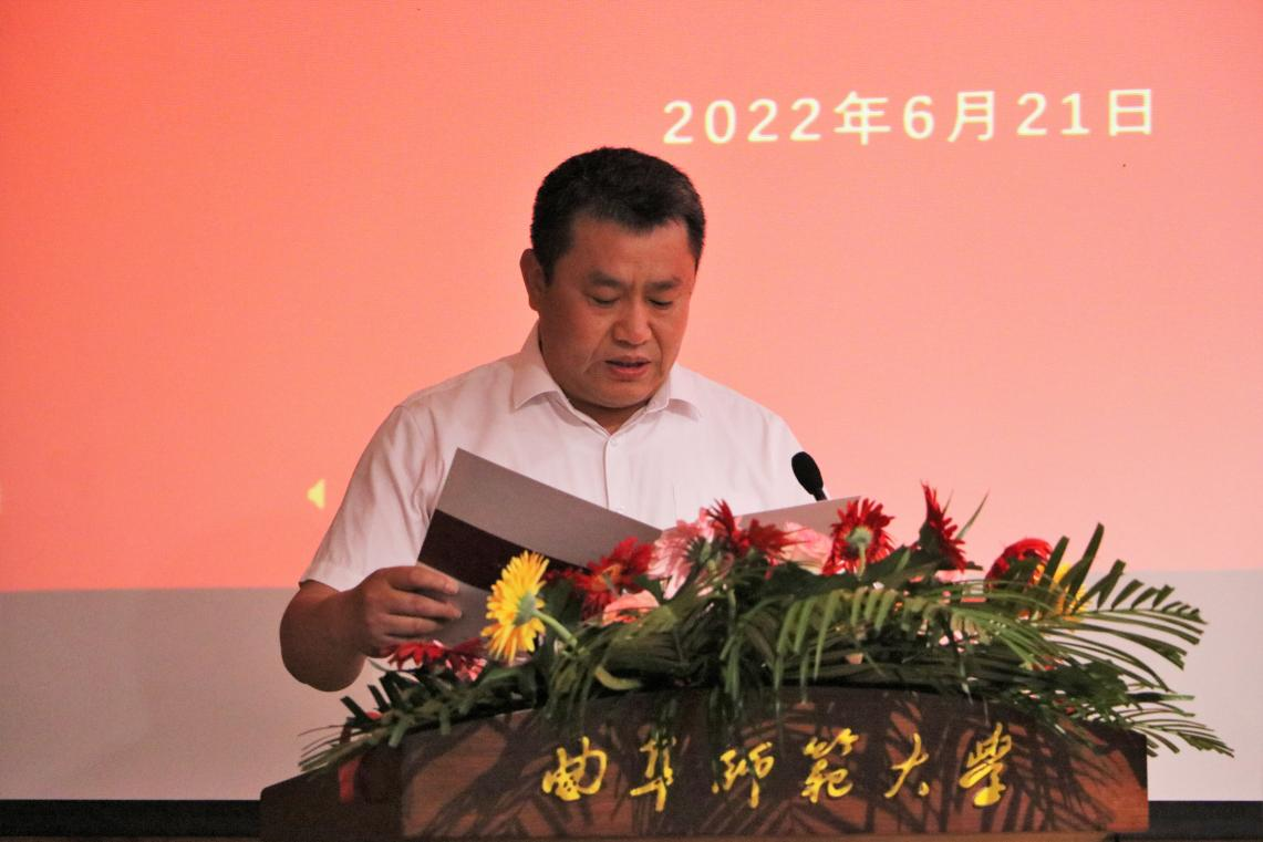 山东省乡村振兴体育研究院副院长曾凡鑫宣读曲阜师范大学体育科学学院2022届毕业生校友联络员聘任决定。