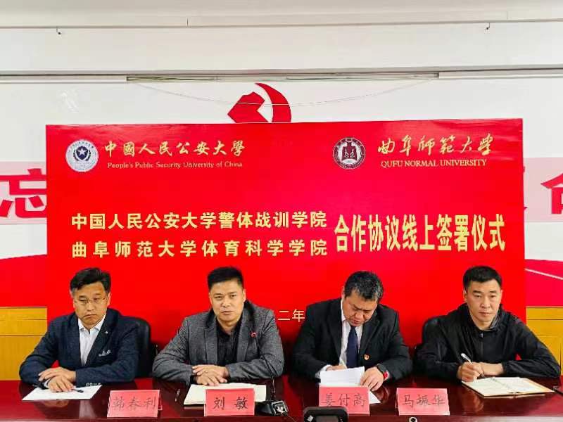 与中国人民公安大学警体战训学院举行合作协议线上签署仪式。警体战训学院党委书记顾海峰,院长翟金鹏,副书记王连清、仲华,院长助理张学永、周鹏,教研室主任靳卫彬、张银福、邱程,体育学部党委书记刘敏,体育学部主任、动漫av