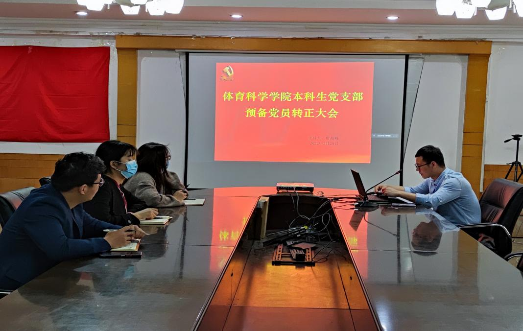 本科生党支部于一楼会议室以线上线下相结合的形式召开预备党员转正大会。会议由党支部书记唐海峰主持,支部全体党员参加,党委副书记马振华线上指导。