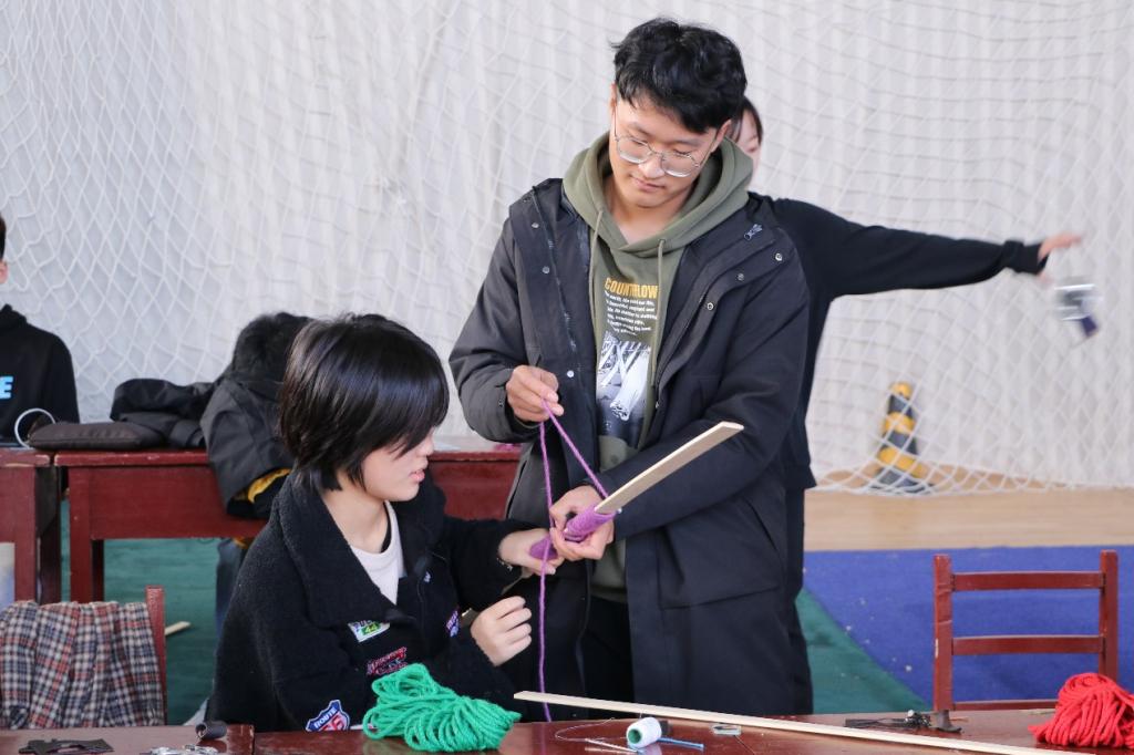 孔子射艺社团社长于文豪进行弓箭制作的基础讲解