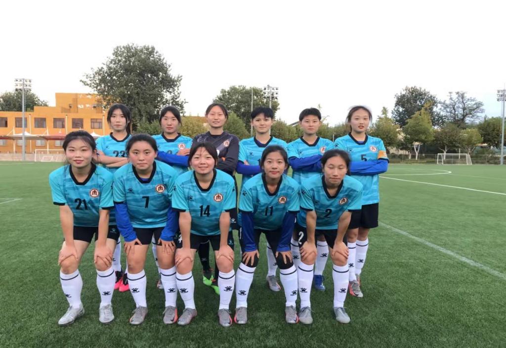 女子足球队赛前刻苦训练,比赛中敢打敢拼,最终取得了亚军的好成绩。