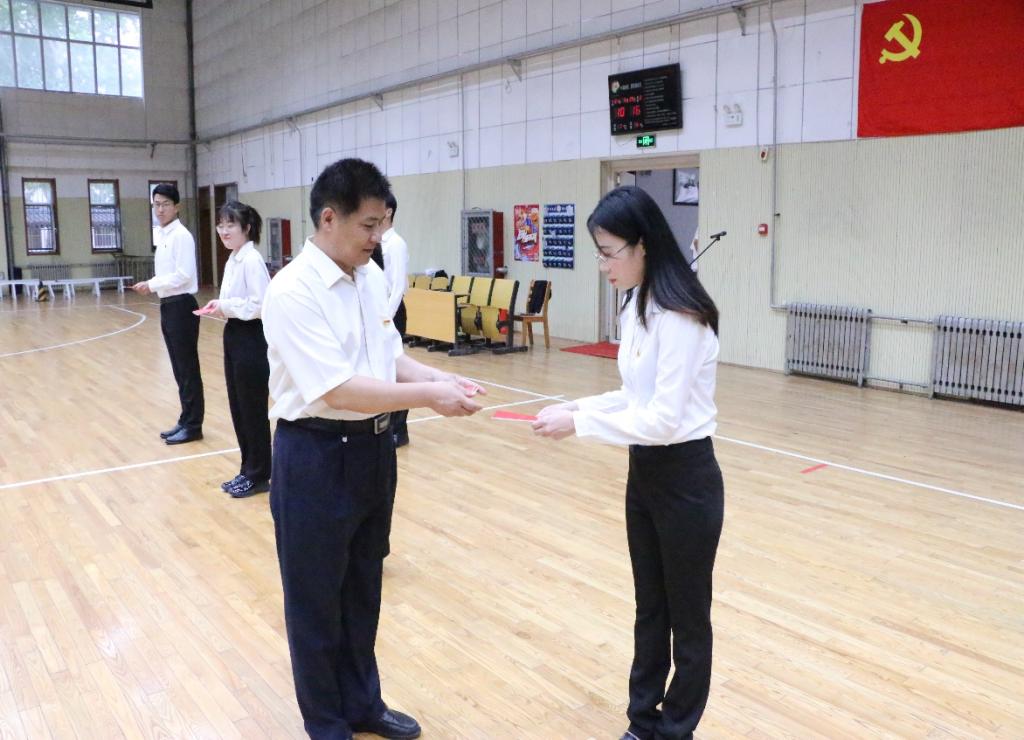 刘敏同志向新党员代表赠送党章。希望新党员坚定理想信念,传承红色基因,坚守铮铮誓言,做到实干担当,坚持党员本色,争当先锋模范。