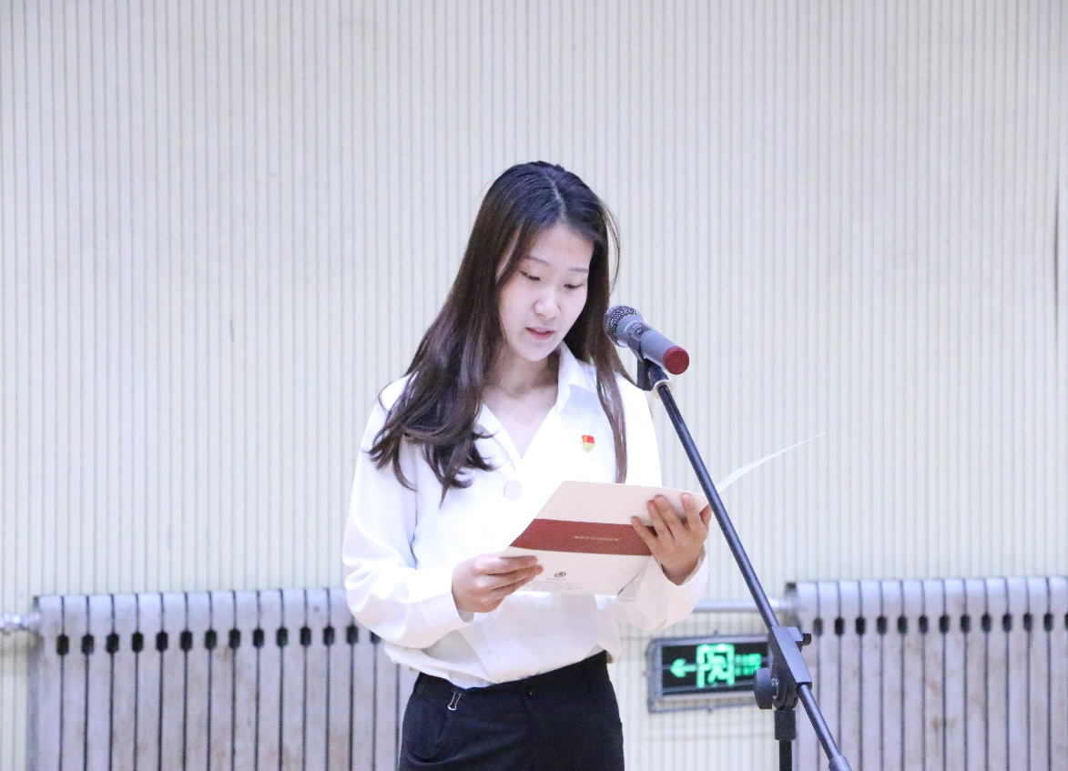 优秀党员代表秦小涵为新党员寄语。