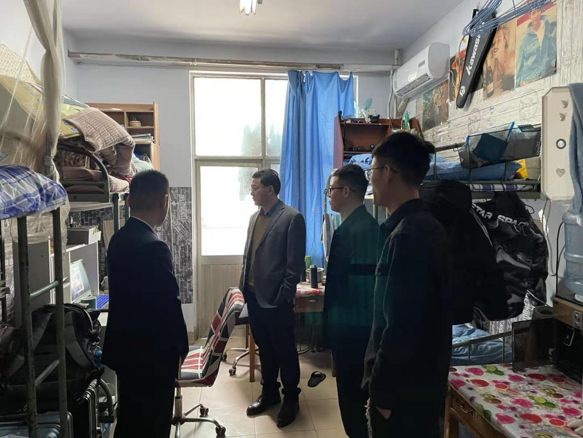 党委副书记展利民带领各年级辅导员深入宿舍,进行排查宿舍安全隐患和卫生检查工作。