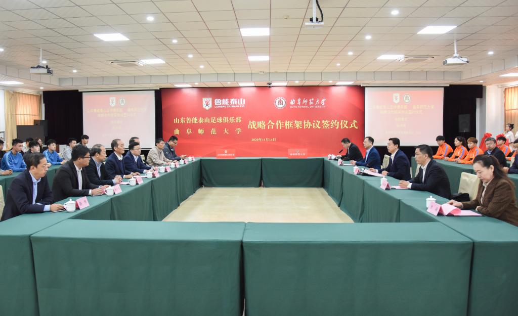 与山东鲁能泰山足球俱乐部战略合作框架协议签约仪式在我校举行。国网山东省电力公司副总经理、鲁能体育文化分公司总经理、党委副书记兼山东鲁能泰山足球俱乐部总经理孙华,山东省教育厅体卫艺处处长孙乐为,济南市体育局副局长、济南奥体中心党委书记吴志东,山东体育协会会长、山东大学体育学院院长孙晋海,曲阜师大校长张洪海、副校长胡钦晓等出席了签约仪式。鲁能体育文化分公司、济南奥体中心场馆,我校国内合作处、招生办公室、动漫av