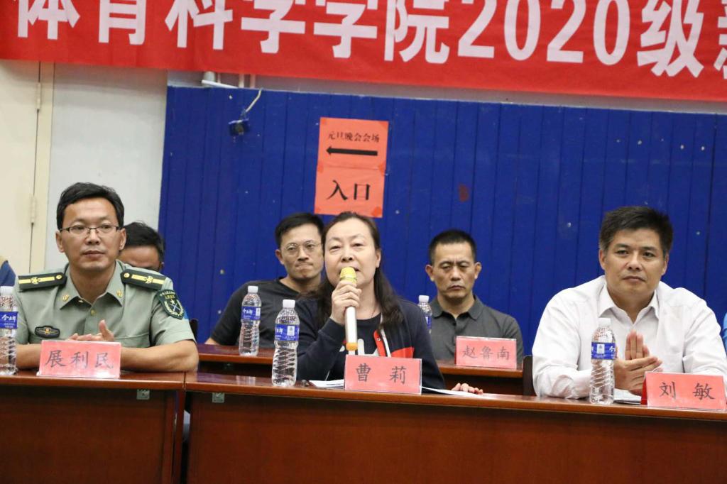 最后由曹莉院长进行了学院的介绍,讲述体育学院所获得的成就,并希望同学们继续努力奋斗,勇于承担责任,做新时代的建设者,成长为一个有着大智慧、高品格和真本领的优秀人才,成为敢当大任、能当大任的青年楷模,与新世纪的中国一路同行、成长,做新时代的建设者,和中国的新时代一起追梦、圆梦!