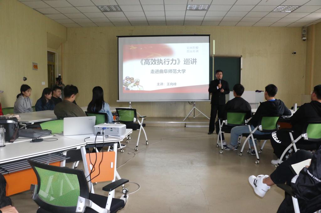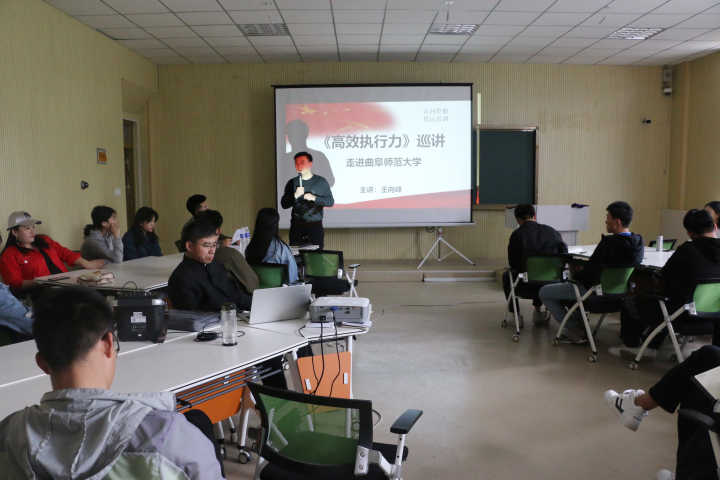 王向峰讲师分别围绕执行力的前提、执行力的流程、执行力的原则和执行力的标准四个部分,用生动的语言、以案例分析的形式为大家剖析了影响执行力的因素、达到高效的执行力是什么标准、在学习工作中如何提高自己的执行力等方面。现场气氛热烈,同学们积极的和讲师互动。