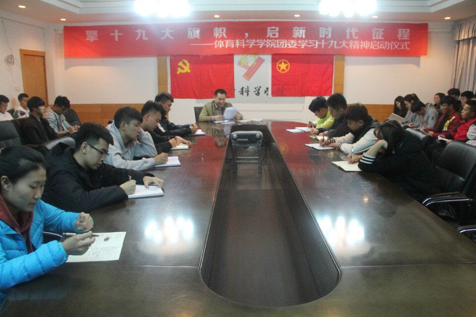 团委学习十九大精神启动仪式在学院一楼会议室举行。参加本次仪式的主要成员有团委书记赵峰老师,主席团成员及学院所有班级的班长和团支书。