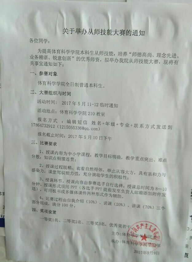 团委学生会学习部在院楼210教师举办从师技能大赛。参加本次大会的有学习部全体成员及我院参赛学生。本次比赛由李朦主持。