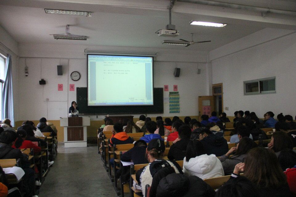 团委学生会秘书处在院楼210教室举办第三届第三期公文写作培训大会。参加活动的主要成员有校团委学生会秘书处处长杨贺,我院学生会秘书处全体成员及学生会其他部门成员。本次大会由姜成森主持。