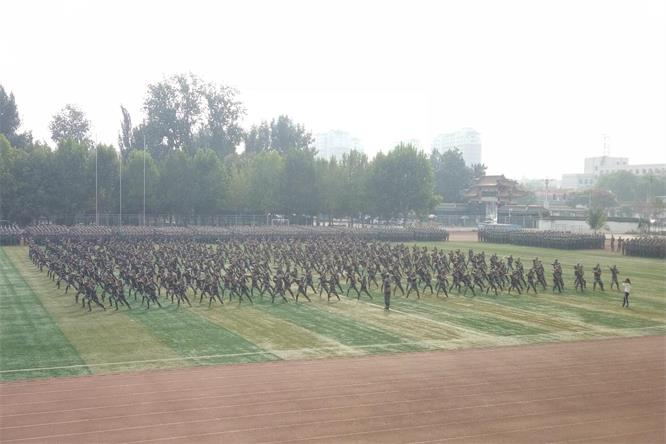2016年学生军训成果汇报表演暨表彰大会在南操场举行。我校党委书记荆兆勋,副校长张洪海,山东陆军预备役炮兵师侦察科科长杨云国,党委办公室、教务处、保卫处、团委等部门的负责同志出席大会。
