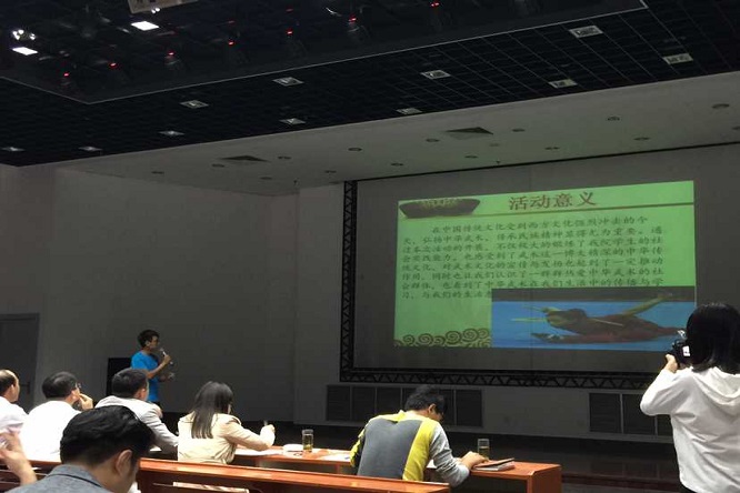 本次答辩主要以PPT展示和解说相结合的方式,时间为三分钟。参加本次答辩的共有14支社会实践团队,来自11个院系和3个机关部门。学院领导一直重视学生的社会实践活动,本次暑期大学生“三下乡”社会实践活动由党总支副书记展利民领队,团总支书记赵峰和辅导员梁贺涵作为指导老师与学院部分学生共同完成。答辩以“武动青春—共兴中华瑰宝”为主题,从团队概况、活动背景、活动意义、活动过程、活动成果五个方面进行,有图片,有文字,还有精彩解说,给在场的领导老师们呈现了一幅美丽的画卷。