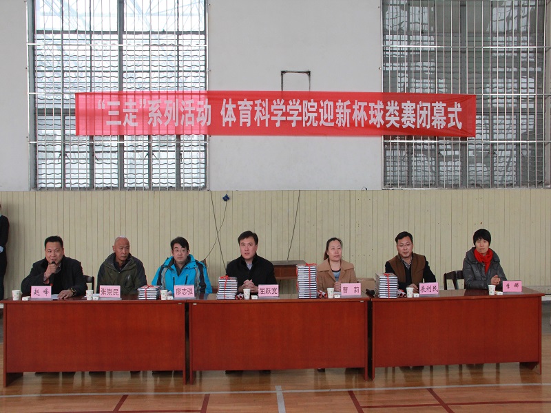 于篮球馆举办“三走”系列活动迎新杯球类赛闭幕式。出席本次会议的有我校团委书记屈跃宽,学院院长曹莉,副院长廖志强,党总支副书记展利民,球类赛指导老师张崇民,团总支书记赵峰,辅导员李娜。本次会议由赵峰主持。