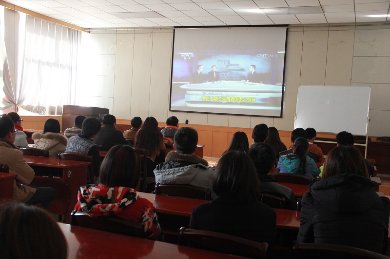 于当日上午10:00在学院会议室举行纪念南京大屠杀77周年活动。党总支副书记展利民和团总支书记赵峰组织学院学生会成员及部分学生观看直播《南京大屠杀死难者国家公祭日》。