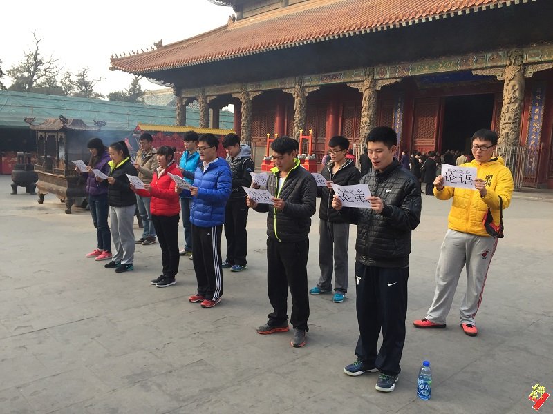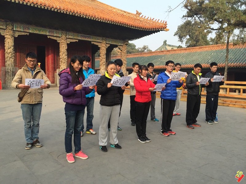 穿过万仞宫墙径直来到三孔之一的孔庙,一路上,队员们认真的记录、虔诚的认知这位被乾隆皇帝称颂为万世师表的点点滴滴,感受着传统文化的魅力与风韵。孔庙之后便是孔府,在这里能感受到的是孔家六代含饴的和睦以及“阁老凳”的清廉与刚正。最后,团队成员们在孔府前诵读论语,深入感受儒家经典文化,并以此结束本次意义深远的活动。
