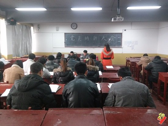 于院楼301教室召开党员纳新大会。参加本次大会的有团总支书记赵峰,辅导员刘翔以及学生党员、预备党员,本次大会内容共有以下两项,分别是预备党员转为正式党员和党员纳新事宜。大会由赵峰主持。