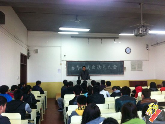 春季运动会赛前动员大会于院楼209教室召开。团总支书记赵峰出席大会并讲话,学生会干部以及即将出战春季运动会的全体运动员参加了会议。