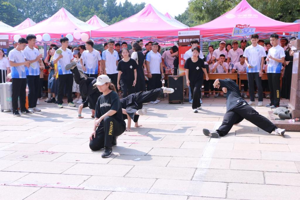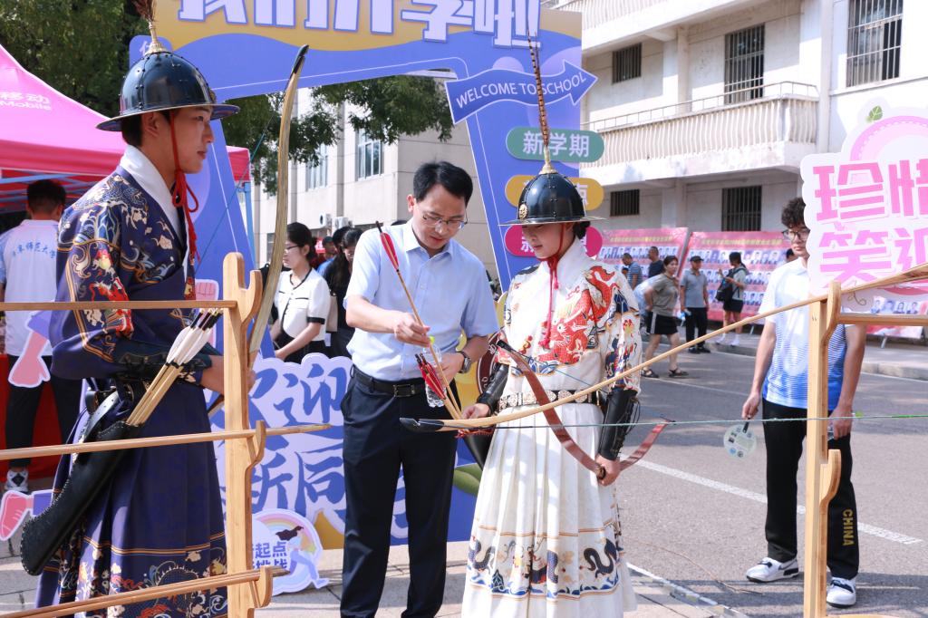 还在迎新现场联合学院各个社团,设置了孔子射艺展示点,并进行了中华传统武术表演以及轮滑、舞蹈等节目表演,现场吸引了大批新生前来学习、观看并参与其中。
