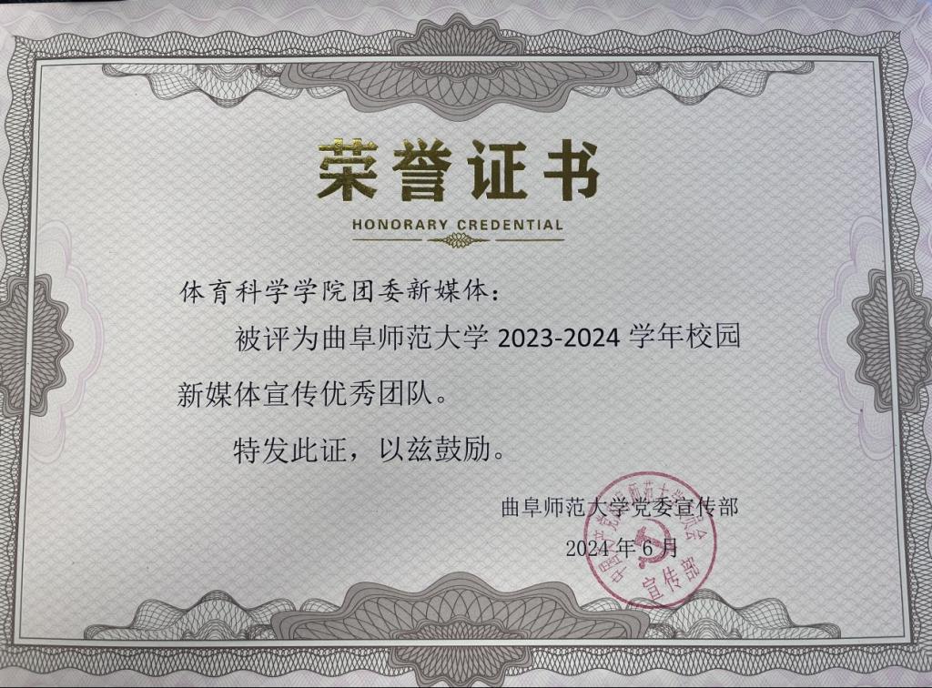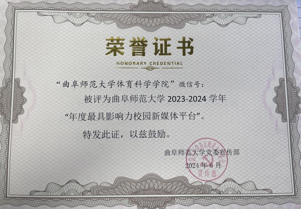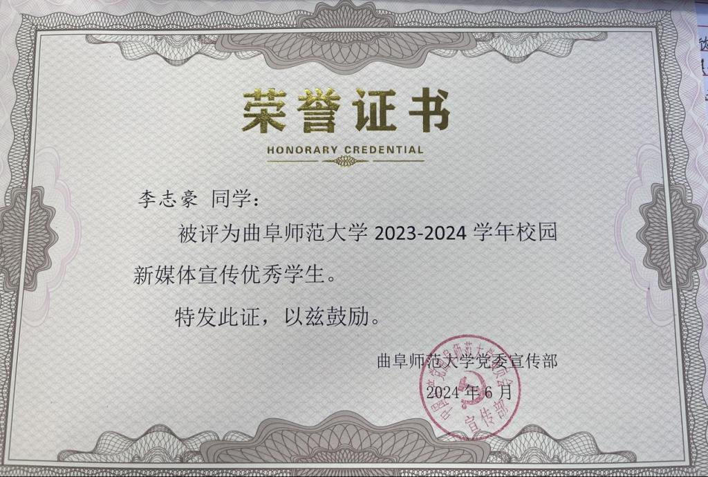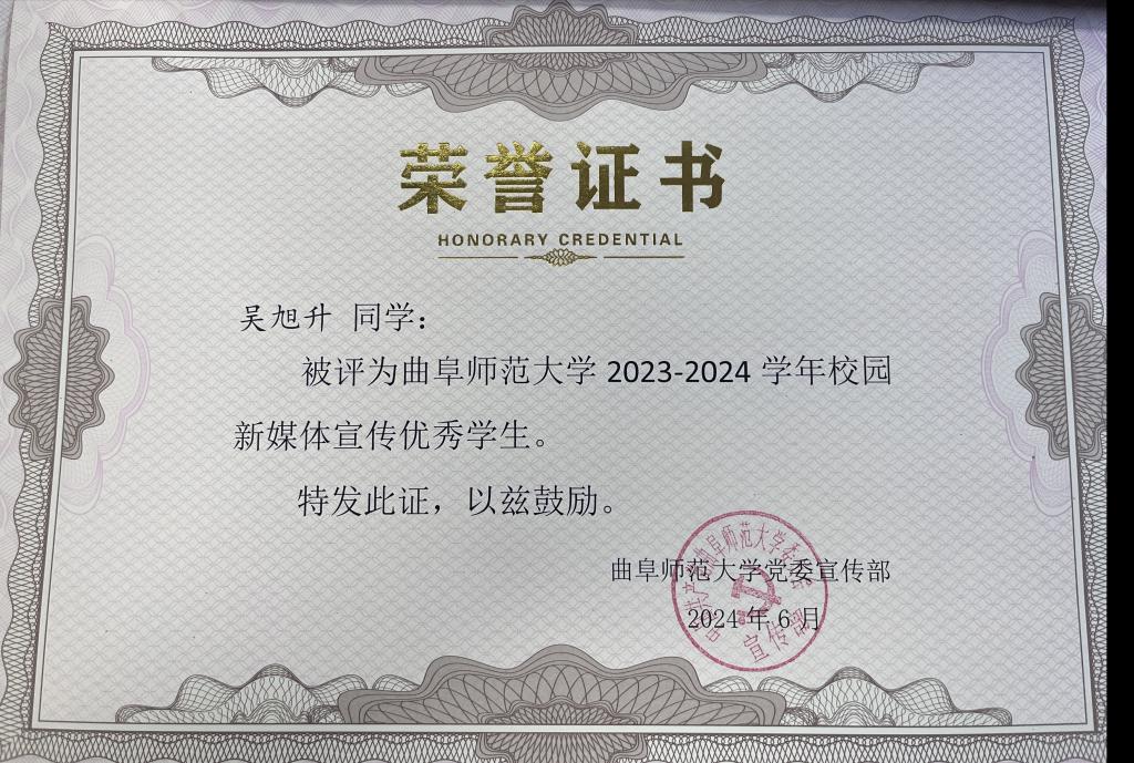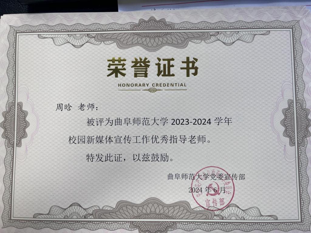 在学校2023-2024学年校园新媒体表彰中取得佳绩。