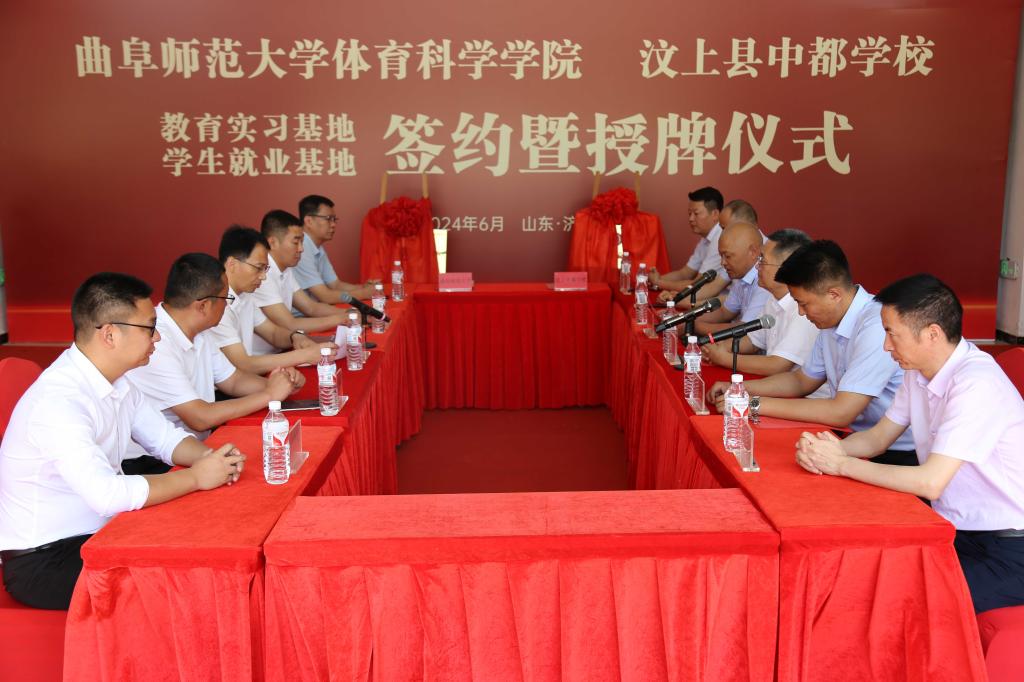 为深入贯彻落实党中央、国务院关于高校毕业生就业工作的决策部署,深入落实就业工作“一把手”工程,千方百计开拓更多就业创业岗位和机会。6月6日上午,体育学部党委书记许怀祥同志、体育学部党委副书记马振华书记、学院副院长伊超同志、指导老师李士建副教授、吴鲁梁副教授带队赴汶上先中都学校开展“访企拓岗”促就业专项工作。汶上教体局副局长路超同志,南京长江教育集团董事长姚杰先生、汶上县中都学校副校长申成甲、小学部校长吴长顺同志、初中部校长丁家友同志、校委会领导成员邵青同志及学校一线教师代表共同出席活动。座谈会上进行了友好的交流和座谈,了解学校用人需求情况,并亲切慰问在该校工作的校友。