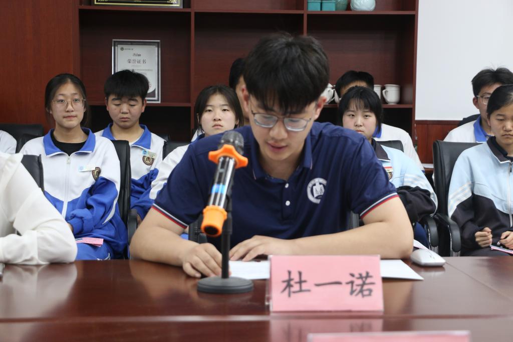 学生会主席杜一诺同学在会上发言,他呼吁同学们积极参与到志愿服务工作中来,表达了志愿者们对服务社会的热切期望和决心。