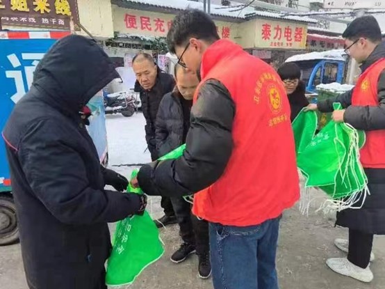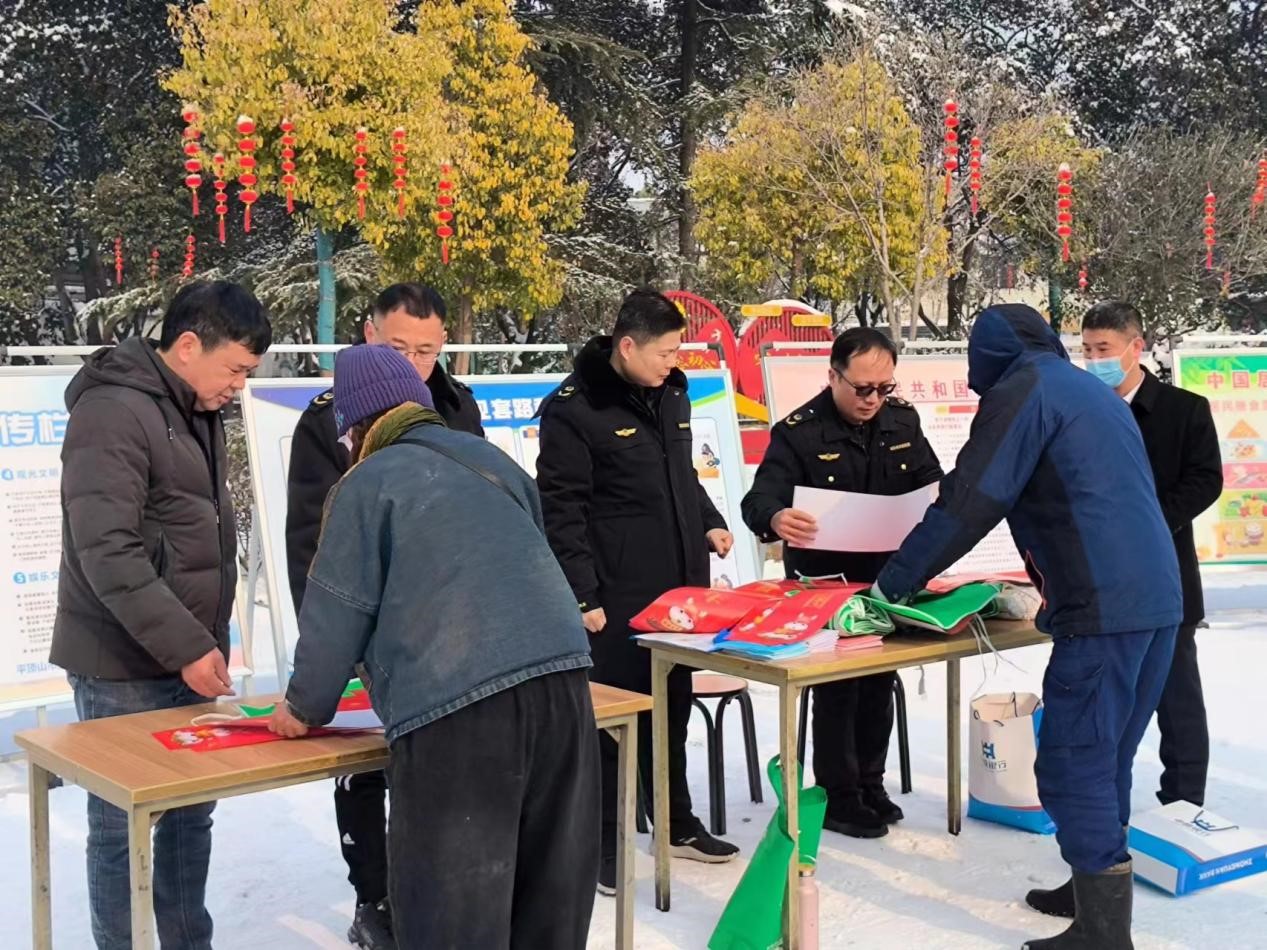 在宣传现场实践队员在场地上布置了活动横幅、宣传展板、设立了法治宣传咨询台,在现场还向社区居民发放新春了“法治年货”大礼包(春联、围裙、环保袋、普法宣传资料等),主要宣传了新修订的行政复议法、老年防诈骗、预防价格欺诈、散煤禁烧令等与群众生活密切相关的法律法规。展板前,法律志愿者仔细讲解法律知识;咨询台前,市场监管执法人员对群众的询问和法律需求现场“开方”,耐心解答。