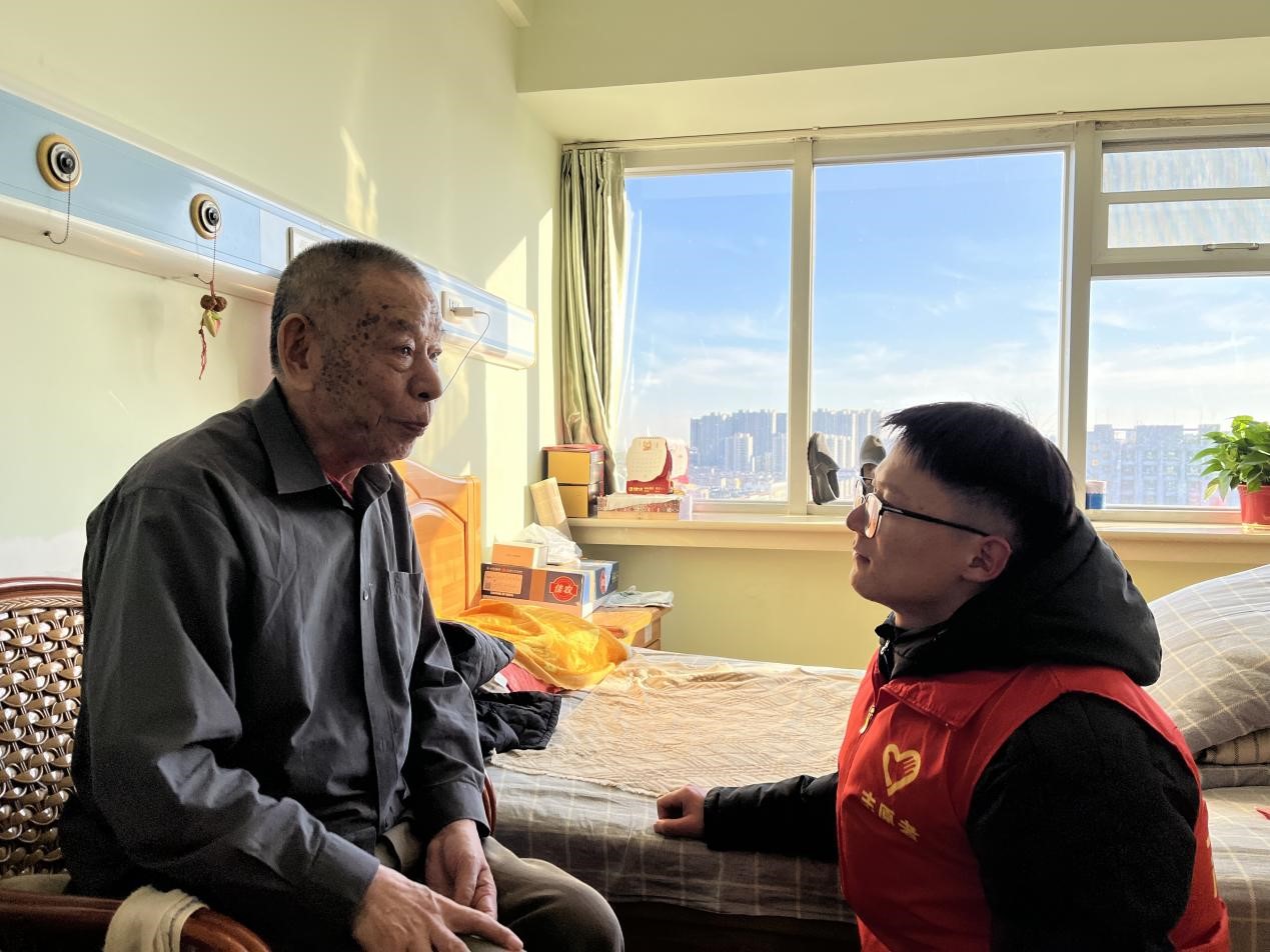 在养老院护士的带领下,队员们来到了一位退伍老人这里。通过访谈,队员们了解到老人的工作经历十分丰富,其始终坚持“听党话,跟党走”的理想信念。他虽然年事已高,但表示仍会以实际行动继续为党旗增添光彩。同时,老人对实践队此次的“三下乡”活动表示支持与肯定,对实践队设置的红色主题知识调查问卷表示赞赏。在老人的心中,年少从军、参与祖国建设是他一辈子最自豪的事,“青年兴则国家兴,青年强则国家强。你们青少年是国家人民的希望,以后也应该在各个岗位上各司其职,发光发热,一起为国家社会的发展进步做出贡献!”他叮嘱年轻一代要听党话、跟党走,珍惜现在国泰民安的美好生活。
