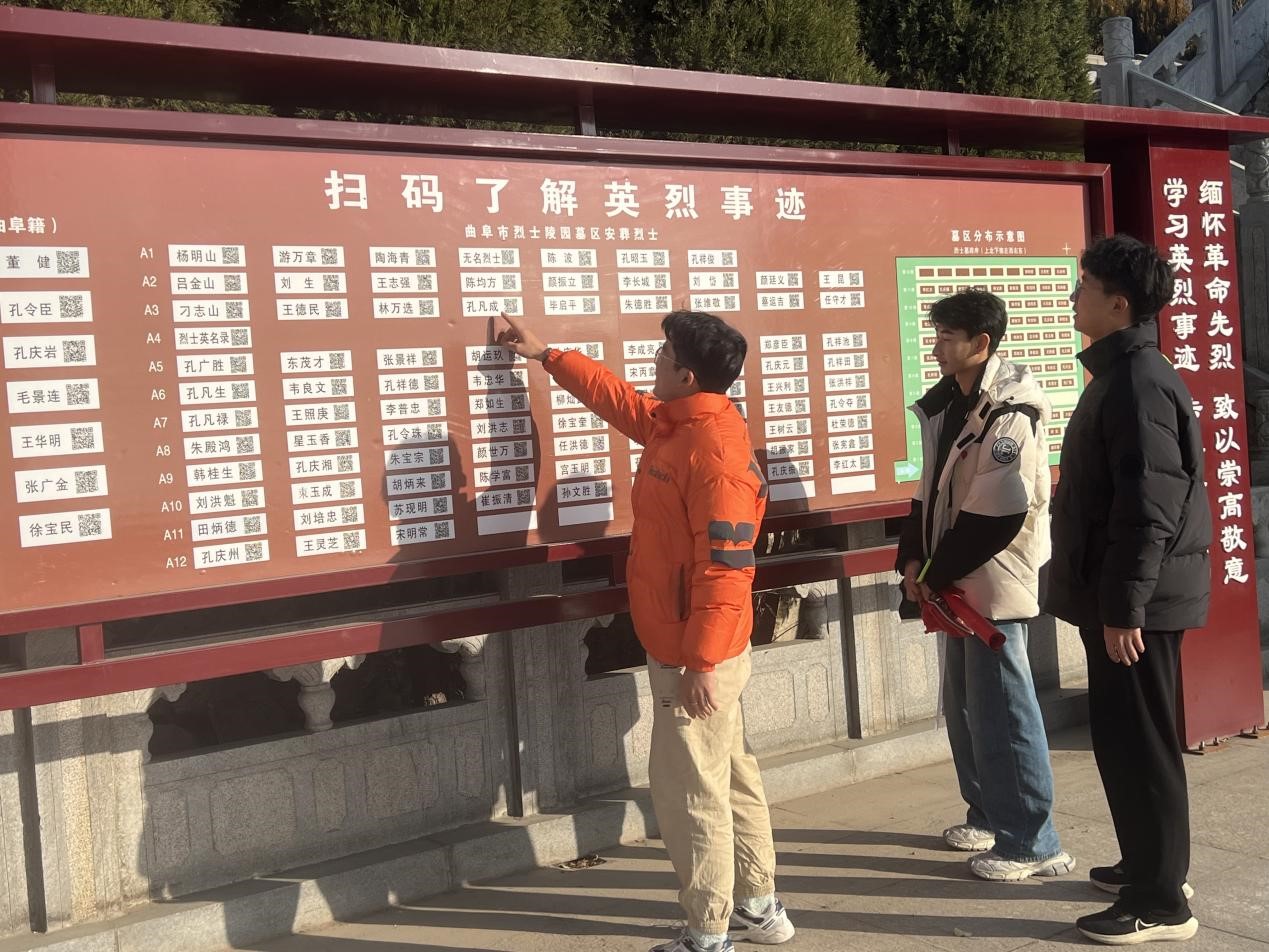 “踔厉奋发,踵事增华”寒假社会实践队于2024年1月12日至1月14日在山东省济宁市曲阜烈士陵园开展以“深悟革命创新理论,增强红色青春底色”为主题的社会实践调研活动。在参观前,通过查询资料了解到烈士陵园内共建有烈士墓97座,安葬烈士226名。其中有名烈士90名,无名烈士墓1座,安葬无名烈士136名。烈士陵园自成立以来以“褒扬先烈、教育后人”为主线,充分发挥爱国主义红色教育基地作用,弘扬了昂扬向上的时代主旋律。同时该陵园主要分为烈士陵园和历史展览馆,是重要的红色教育基地。
