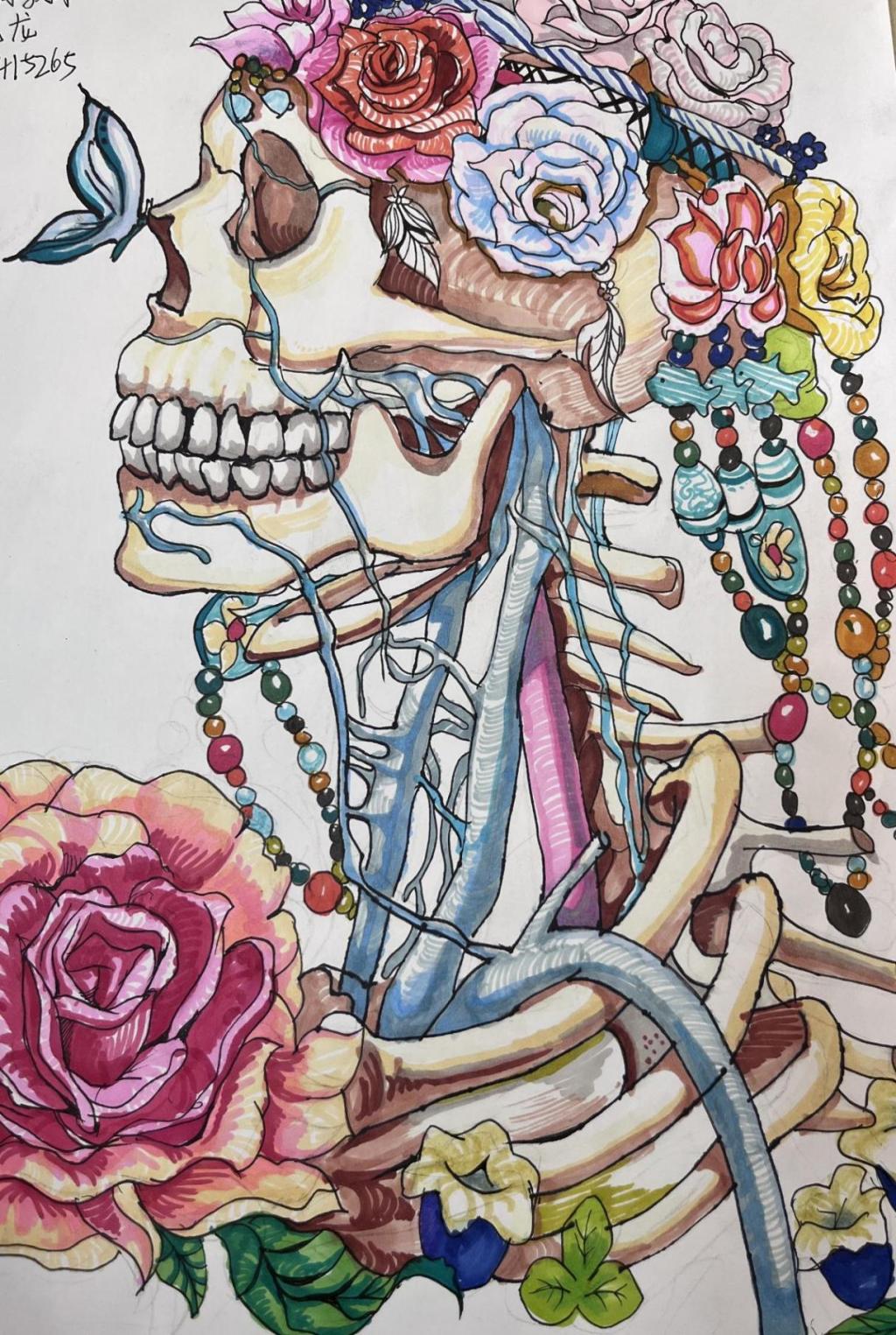 浸润之色,更显温度。一幅幅作品在不同的创作者手中被赋予不同的温度,它们或讴歌生命的不朽,亦或感叹生命的美好与人体构造的神奇,敬畏生命的同时又包含着珍惜光阴的勉励,这也让参赛作品在令人赏心悦目的同时让人意味深长,回味无穷。当在解剖图中绘出希望之花,是青春的飞扬,也是对强化自身本领的坚持,更是对未来的憧憬与理想的期盼。