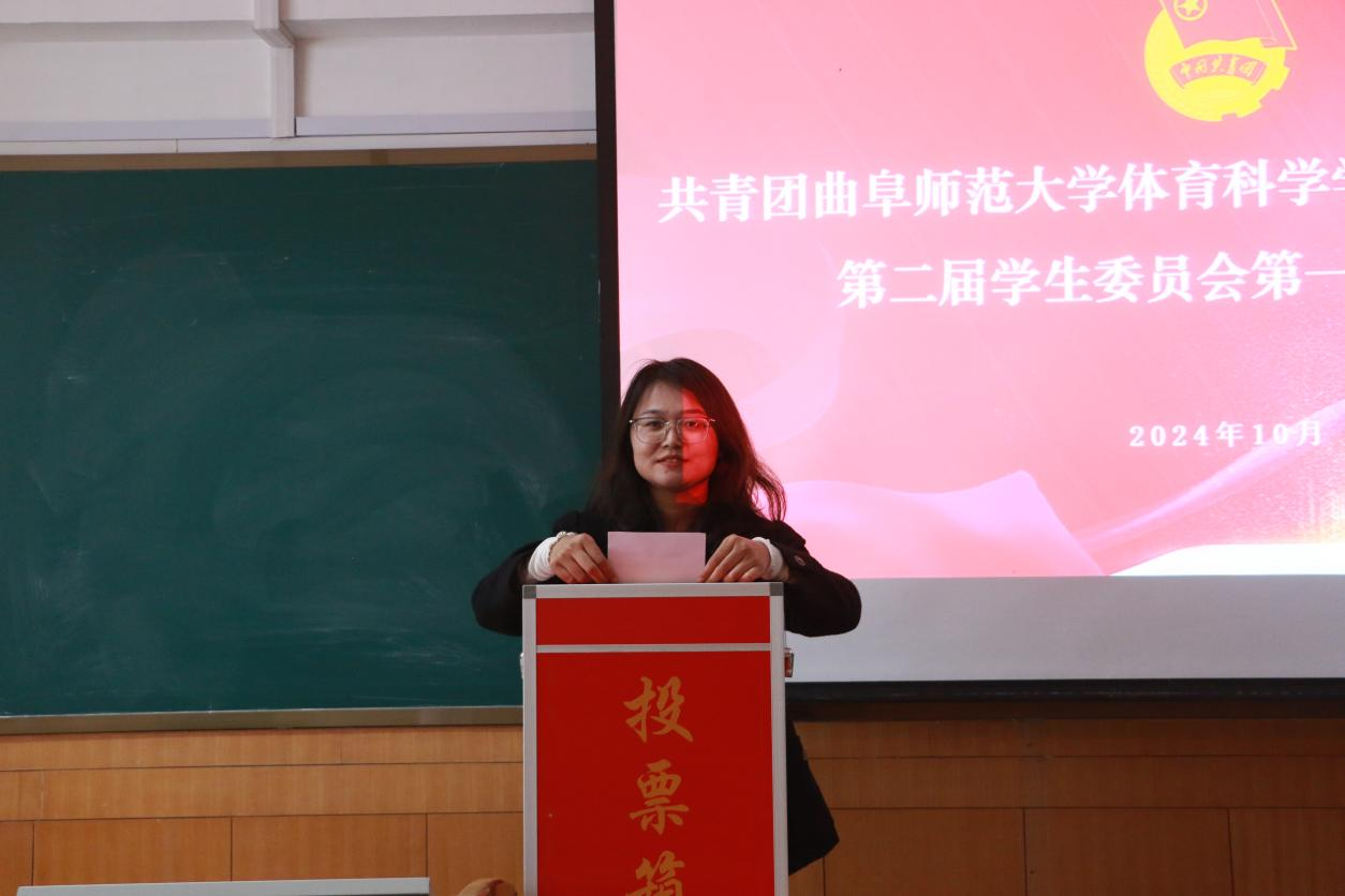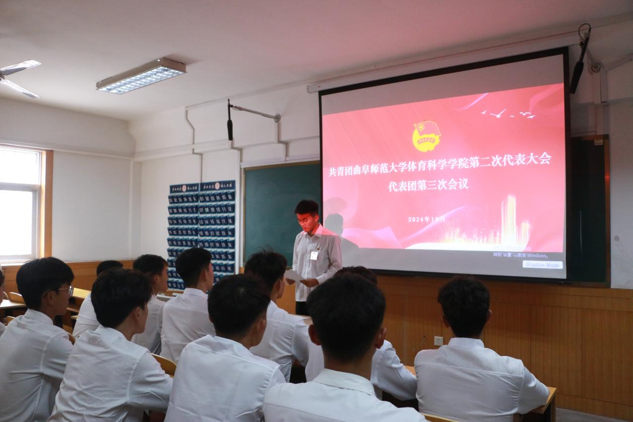 马振华代表体育学部党委向大会的召开表示热烈祝贺,并向学院全体团员青年致以诚挚问候,他表示,召开本次大会是推进落实基层团学组织改革的必要内容,是积极探索团工作新思路、新方法、新模式的具体体现。希望团员代表积极建言献策、认真履行职责,选出新一届共青团委员会,不辜负领导老师和广大同学的信赖。希望学院团委发扬优良传统,推动学院团工作再攀新高峰,带领体科学子创造新辉煌,为学校、学院各项事业的健康发展、为推动孔子家乡高水平一流大学建设贡献青春力量。