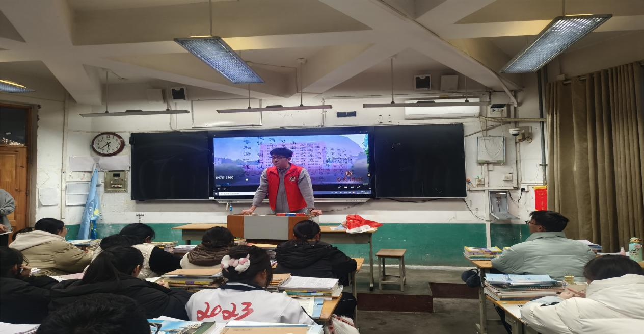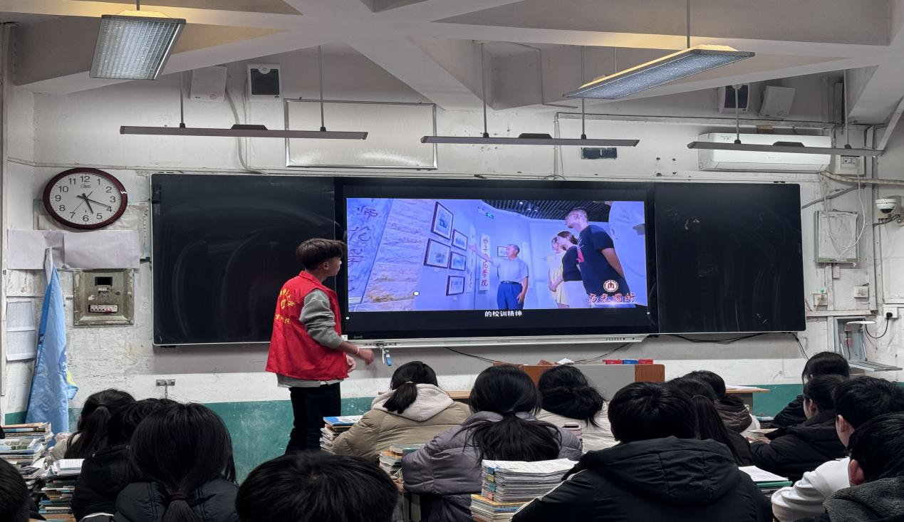 (图为实践队队员杨林远为同学们进行视频讲解)