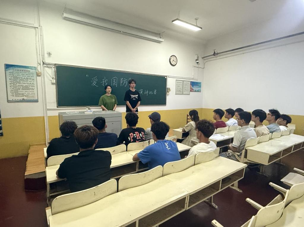 于5月11日举办“爱我国防”主题演讲比赛,现场气氛热烈,同学们积极参与。